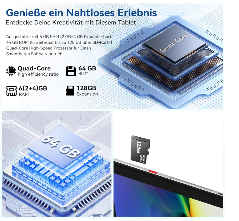 【Android 13 + Processeur Quad-Core】Cette tablette est équipée d’Android 13 et d’un puissant processeur quad-core qui garantit d’excellentes performances. Il apporte des améliorations significatives dans les domaines du multitâche, de la personnalisation, des fonctions de sécurité et de la protection des données. Équipé d’une surveillance du temps pour gérer l’utilisation de la tablette. Résoudre les préoccupations des parents concernant le temps et la sélection des applications que votre enfant utilise avec la tablette