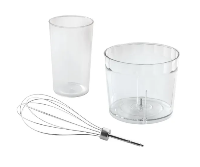 1x mixeur, 1 hachoir de 500 ml, 1 mélangeur de 60 ml, des lames |