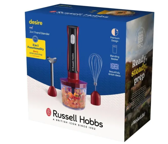 Mixeur plongeant 3en1: mixeur/hachoir/fouet - RUSSEL HOBBS - Desire Red - 500 W - 2 vitesses + Pulse - Rouge |